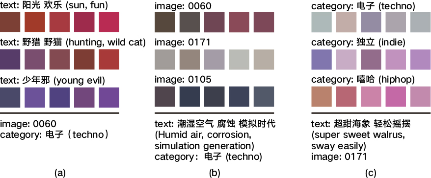 With the support of colleagues, we also developed an intelligent deviant color design platform. Users can input any text, and the AI algorithm generates a color palette based on its semantic meaning.